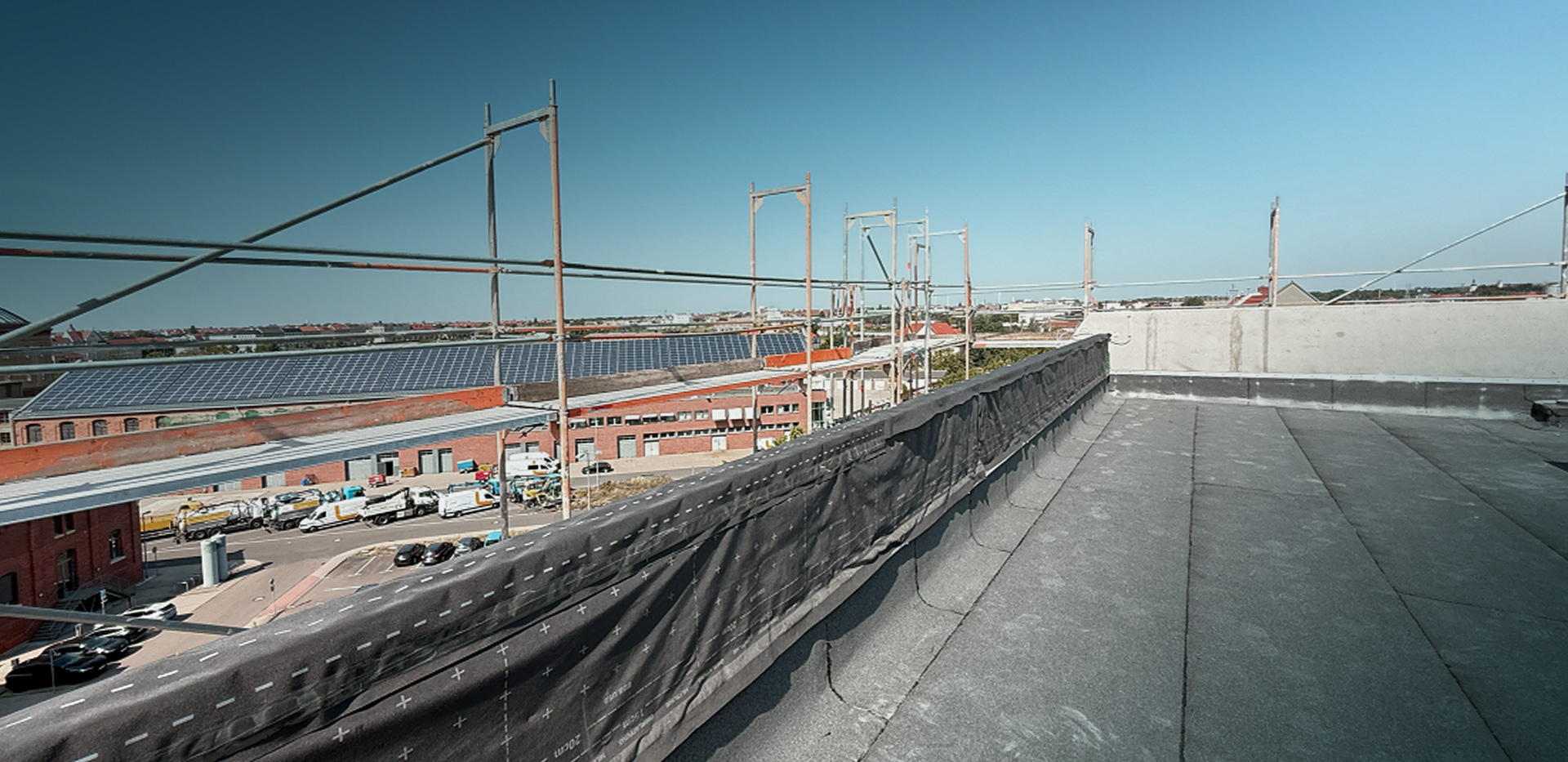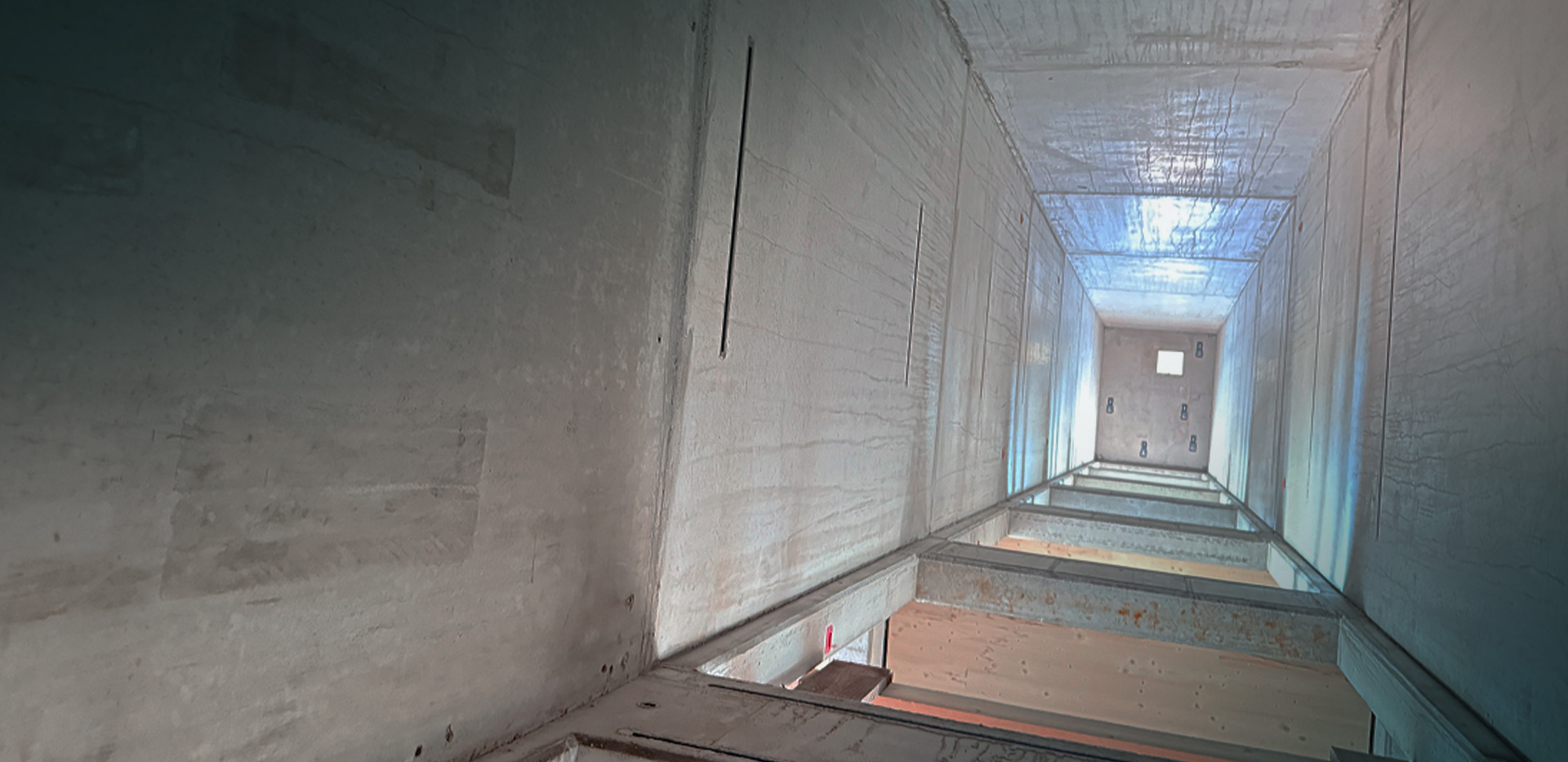 Und auch der Zugang zur Dachterrasse erfolgt über einen außenliegenden Treppenturm aus Stahlbeton-Fertigteilen. Eine durchdachte Konstruktion mit ökologisch-nachhaltigem Fokus, die künftig über eine Luft-Wasser-Wärmepumpe mit Wärmeenergie versorgt werden soll.