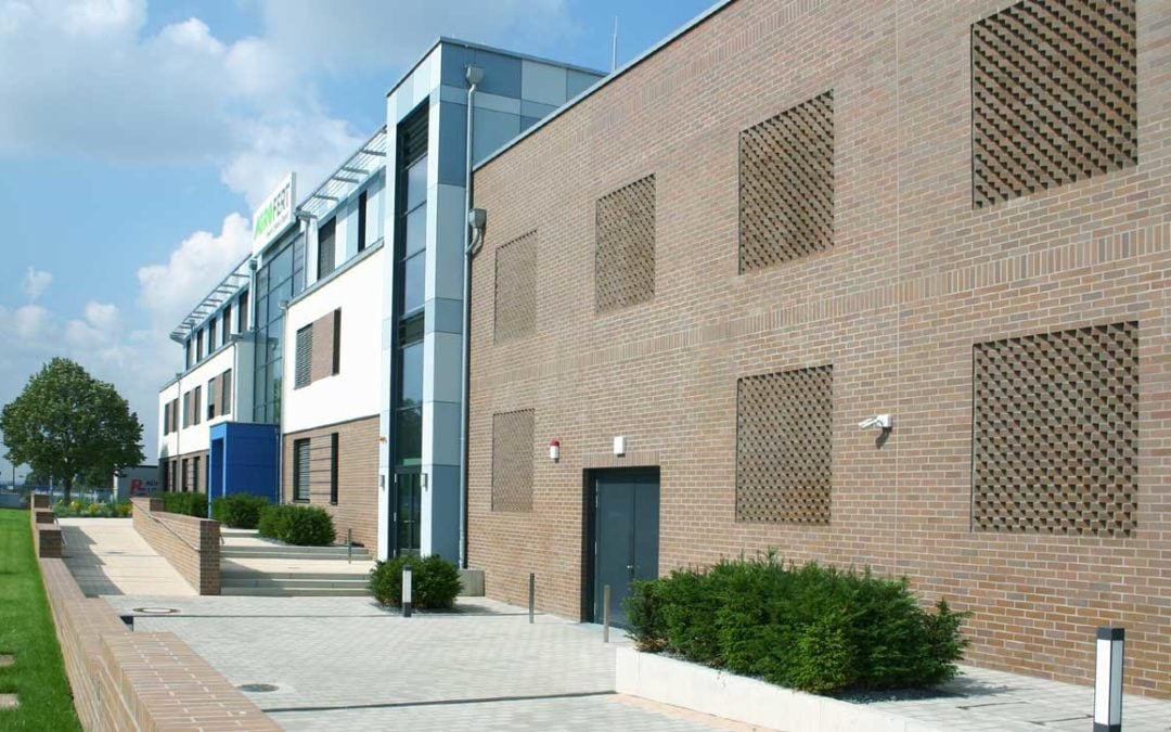 Das Kellergeschoss wird als WU-Beton Konstruktion ausgebildet. Die Gründungssohlen befinden sich auf unterschiedlichen Ebenen, so dass abgetreppte Gründungskörper hergestellt werden mussten. Das Rechenzentrum ist ein Stahlbetongebäude zur Ausbildung eines Faraday’schen Käfigs. Die Etagen sind mit Doppelböden zur freien Installation der Rechentechnik etc. ausgestattet. Beide Gebäudeteile erhalten eine vorgesetzte Fassade aus Klinker sowie aus Eternit-Platten.